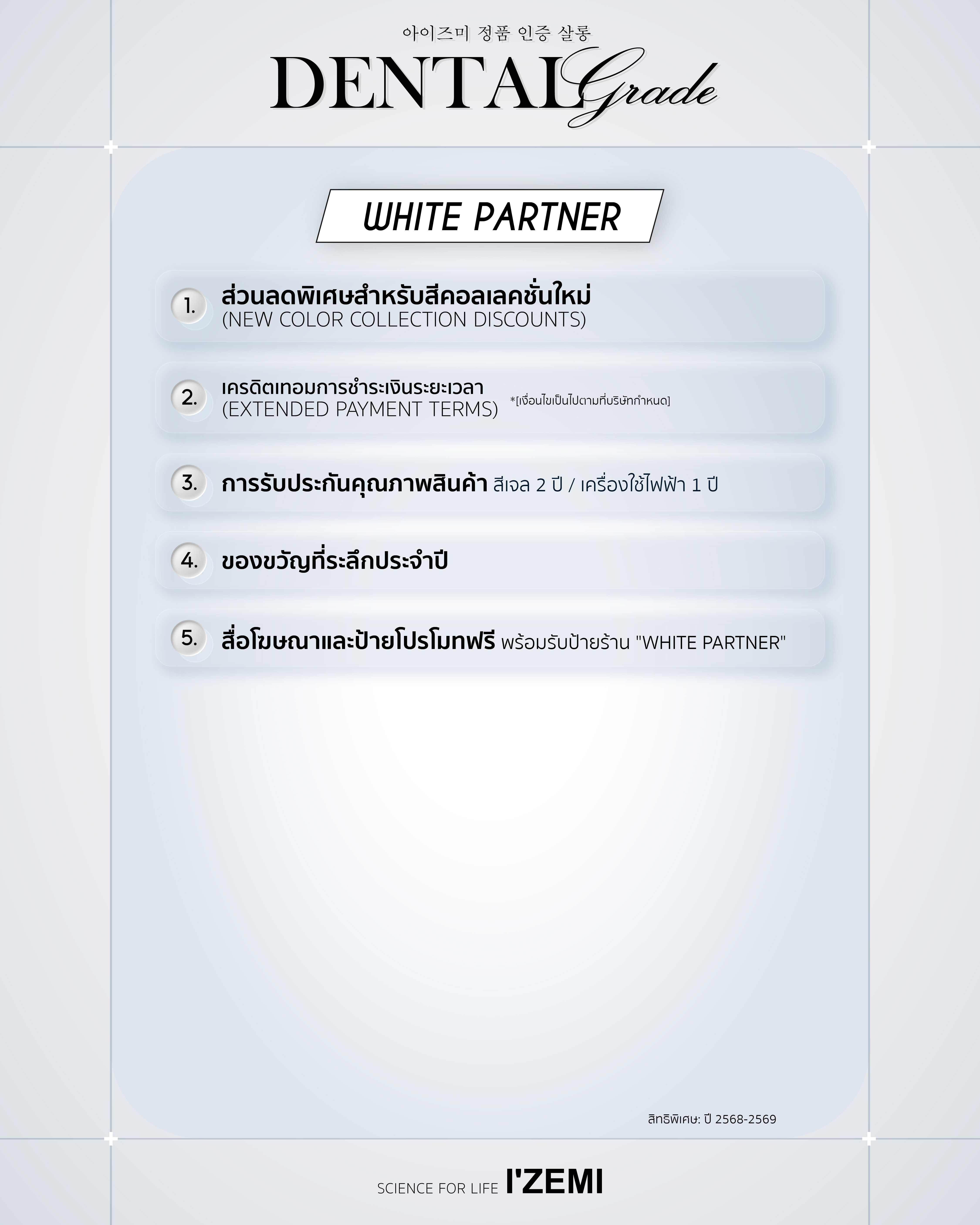 ลูกค้าที่ใช้ IZEMI จะได้รับป้ายการันตีคุณภาพ Dental Grade