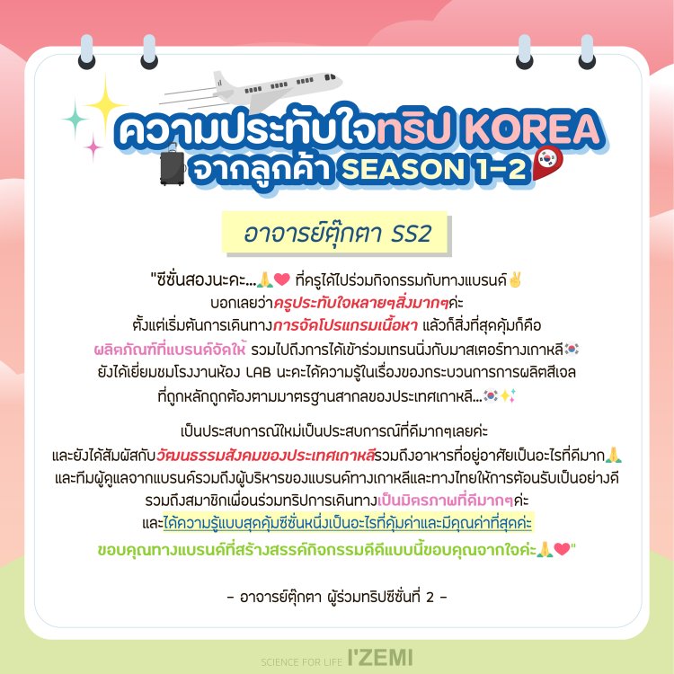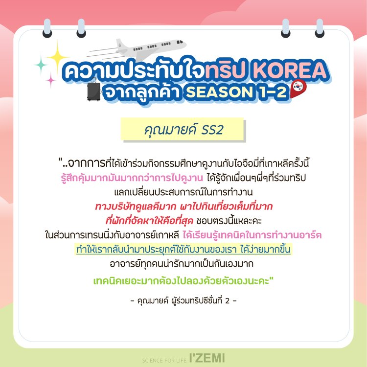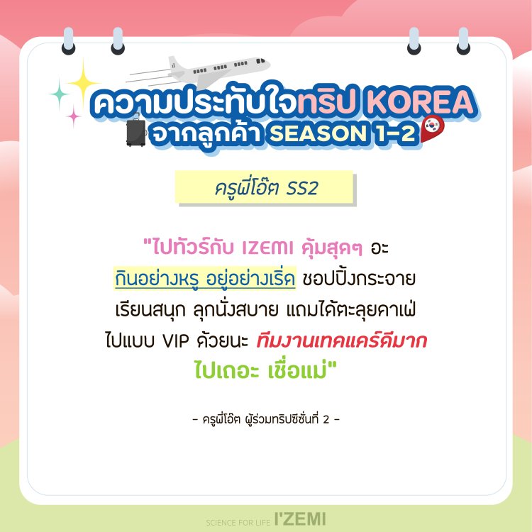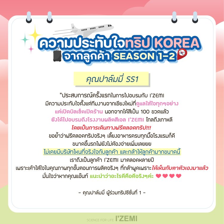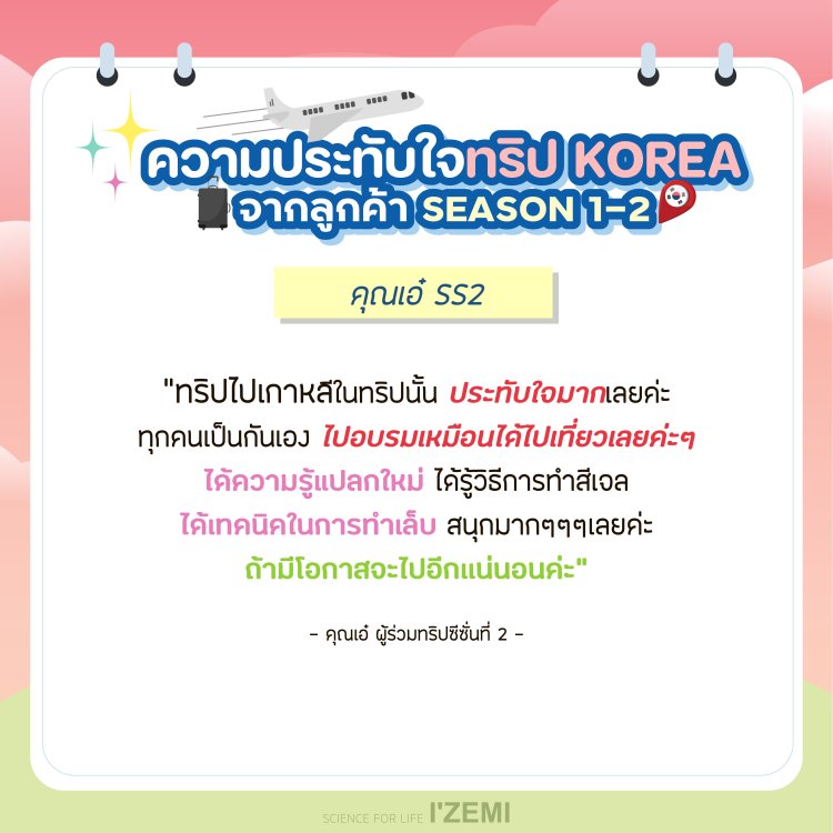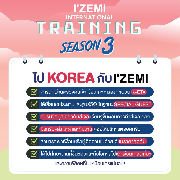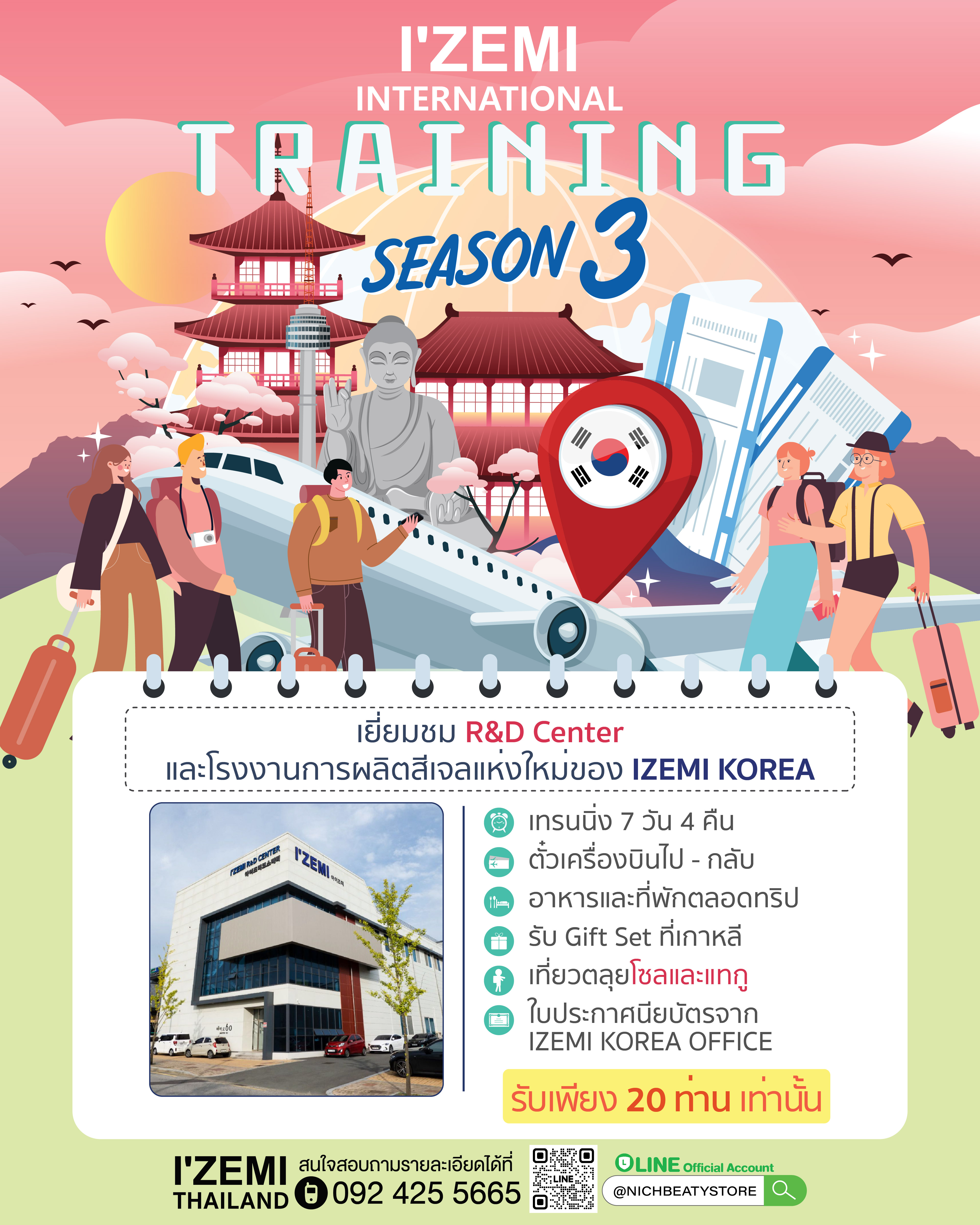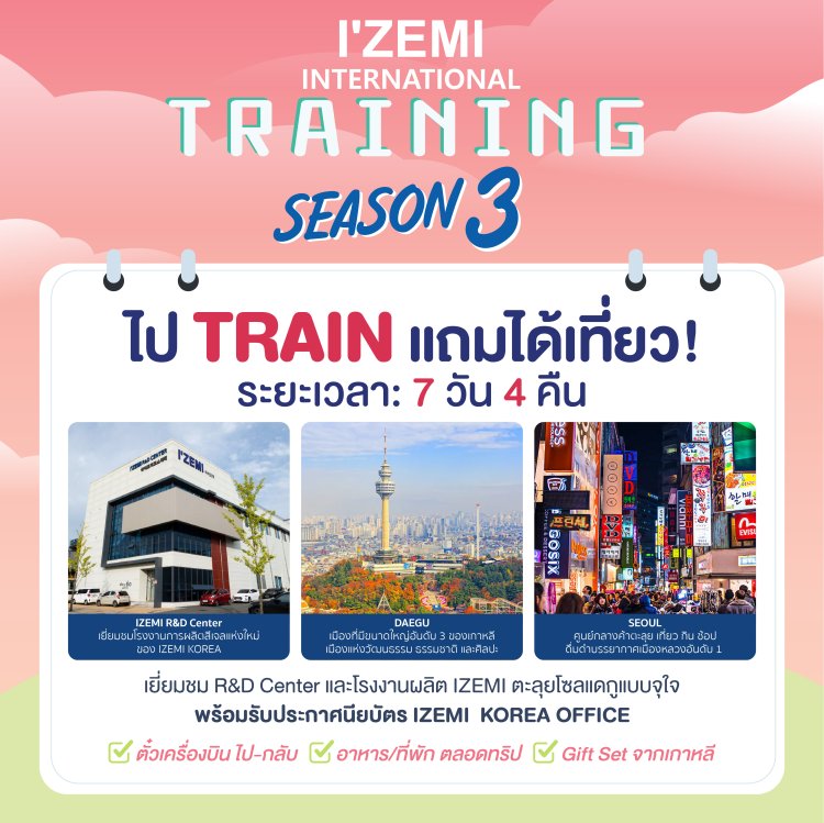 IZEMI KOREA Training Program Season 3 ผู้เดินทาง 20 ที่นั่ง *จำนวนจำกัด*สอบถามรายละเอียดเพิ่มเติมได้ที่ 092 425 5665 หรือ LINE: @NICHBEATYSTORE