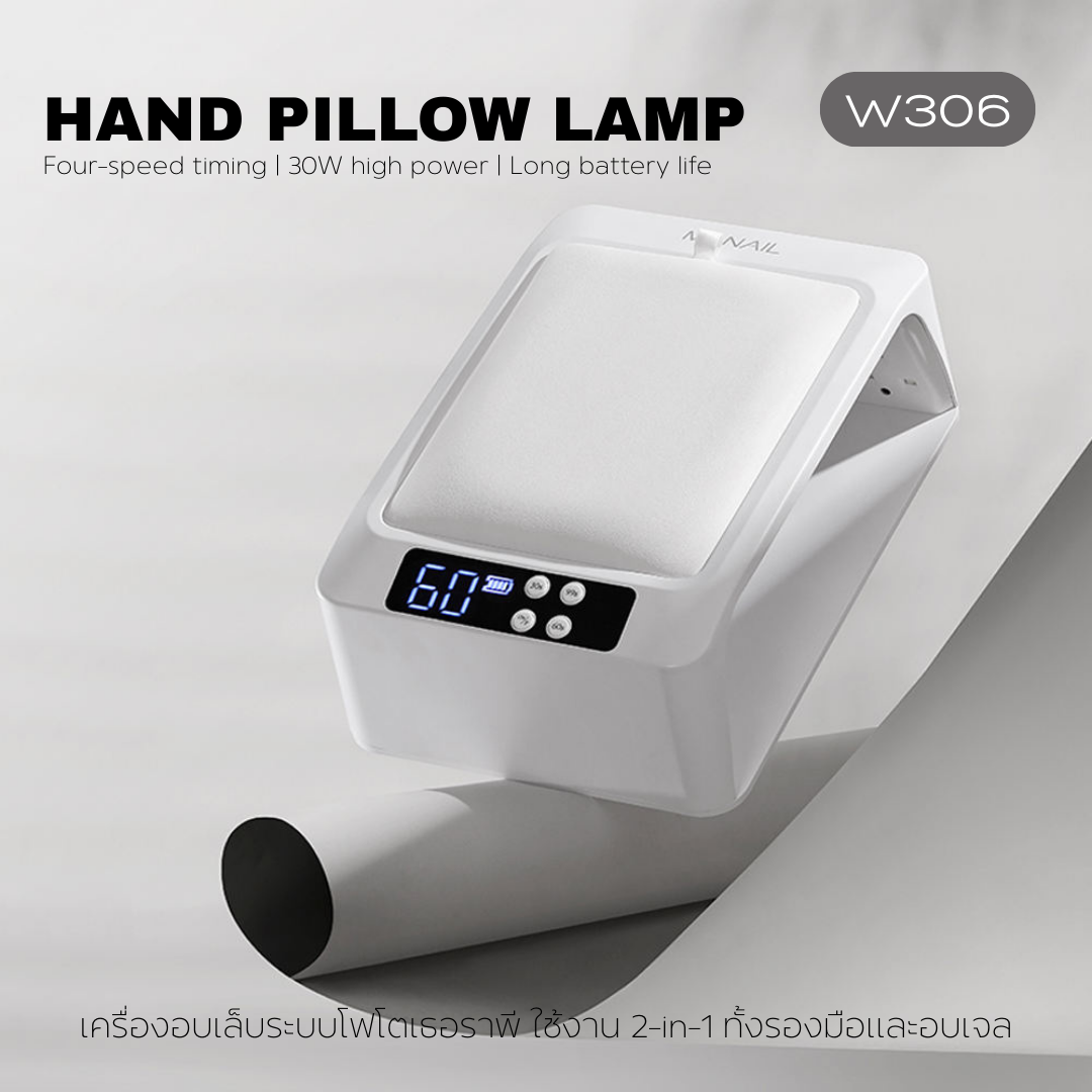 W306 Mr. Nail - Nail Lamp Hand pillow / เครื่องอบเล็บเจลทรงสี่เหลี่ยมใหญ่- สีขาว แบบไร้สายมีแบตในตัว